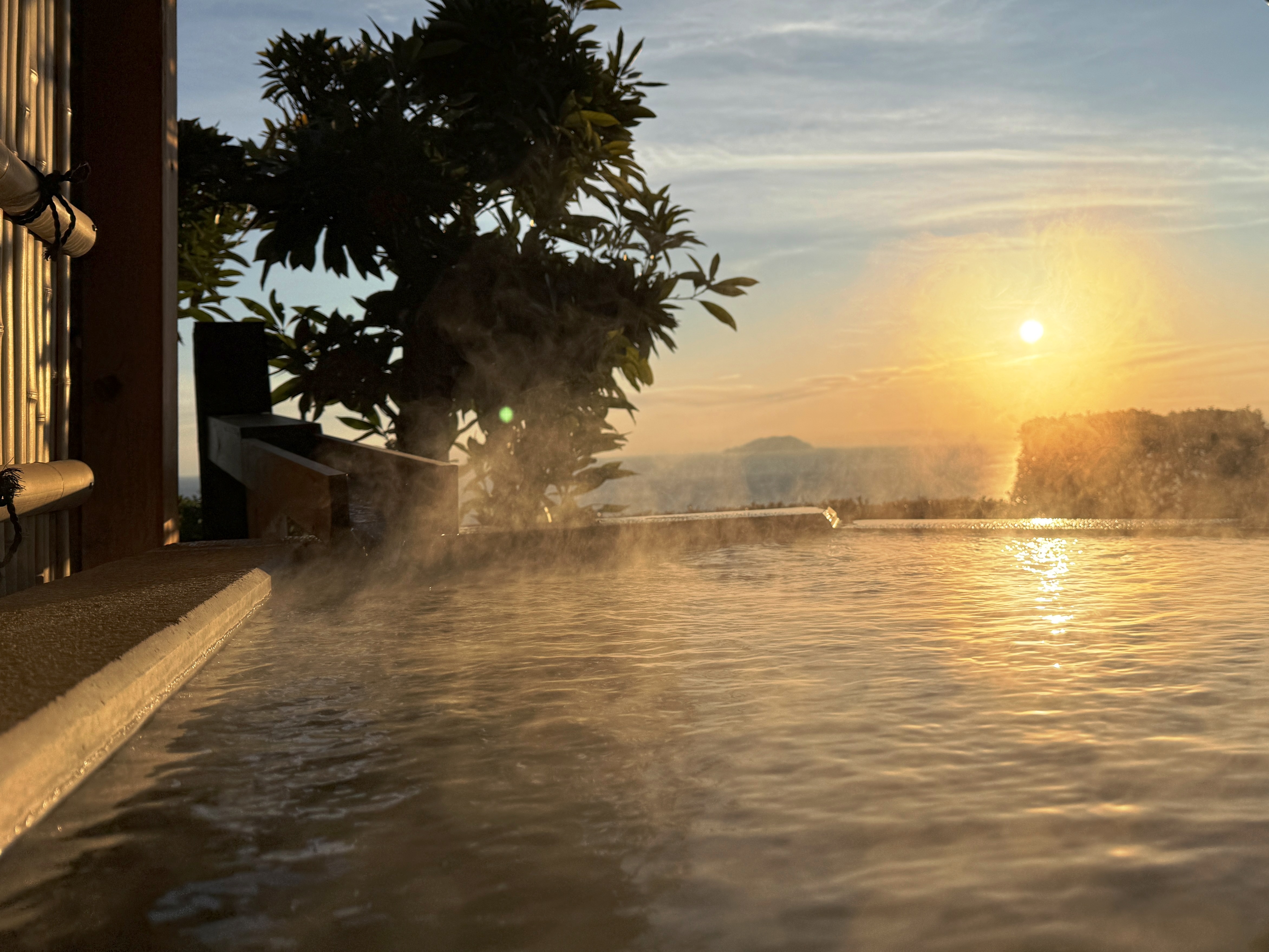 和亭自慢の客室露天風呂から、日本海に昇る朝日を眺める贅沢な時間✨