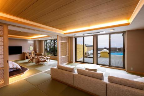 2024年3月オープン!新客室「特別室 瑠璃ノ海(露天風呂付き客室)」。(233.1平方メートル)